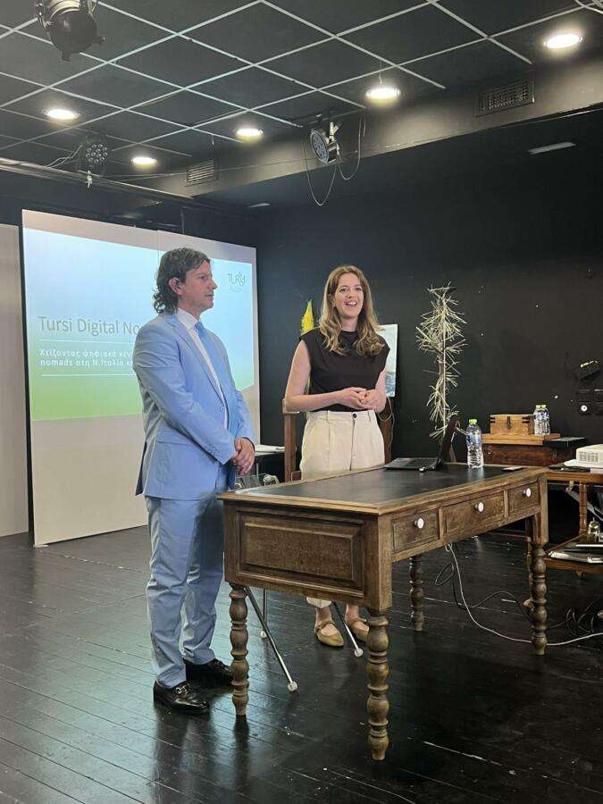 Από την επικεφαλής του προγράμματος κα Μαρία Βασλή και τον κ. Salvatore Gulfo στο πλαίσιο της επίσκεψης, πραγματοποιήθηκε παρουσίαση του προγράμματος «Ψηφιακοί Νομάδες», με στόχο την ανάδειξη των δυνατοτήτων υλοποίησης του προγράμματος στην ευρύτερη περιοχή.