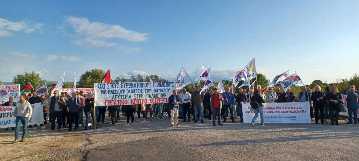 Κινητοποίηση στη βάση του Ακτίου πραγματοποίησαν οι Επιτροπές Ειρήνης, τα Εργατικά Κέντρα και άλλοι φορείς της Βορειοδυτικής Ελλάδας, εκφράζοντας τη λαϊκή απαίτηση απεμπλοκής της Ελλάδας από τον ιμπεριαλιστικό πόλεμο στην Ουκρανία και την στήριξη της κυβέρνησης στο κράτος δολοφόνο του Ισραήλ, εκφράζοντας