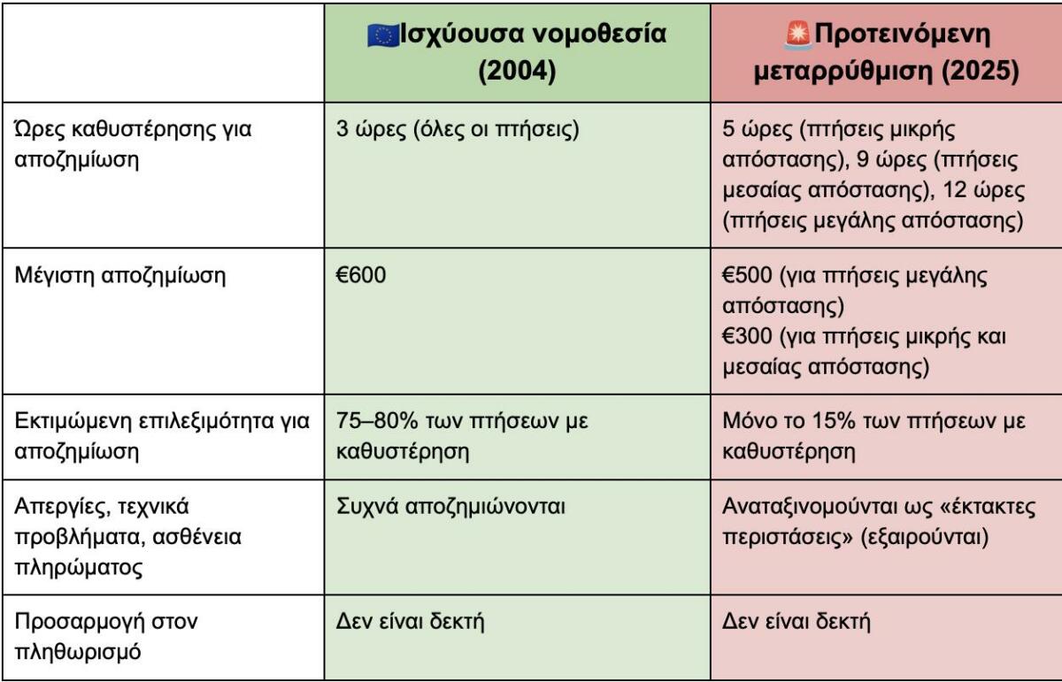 Οι Έλληνες επιβάτες θα χάσουν σημαντικά δικαιώματα, ενώ το οικονομικό βάρος από τις καθυστερήσεις θα μετακυλίεται σε αυτούς.