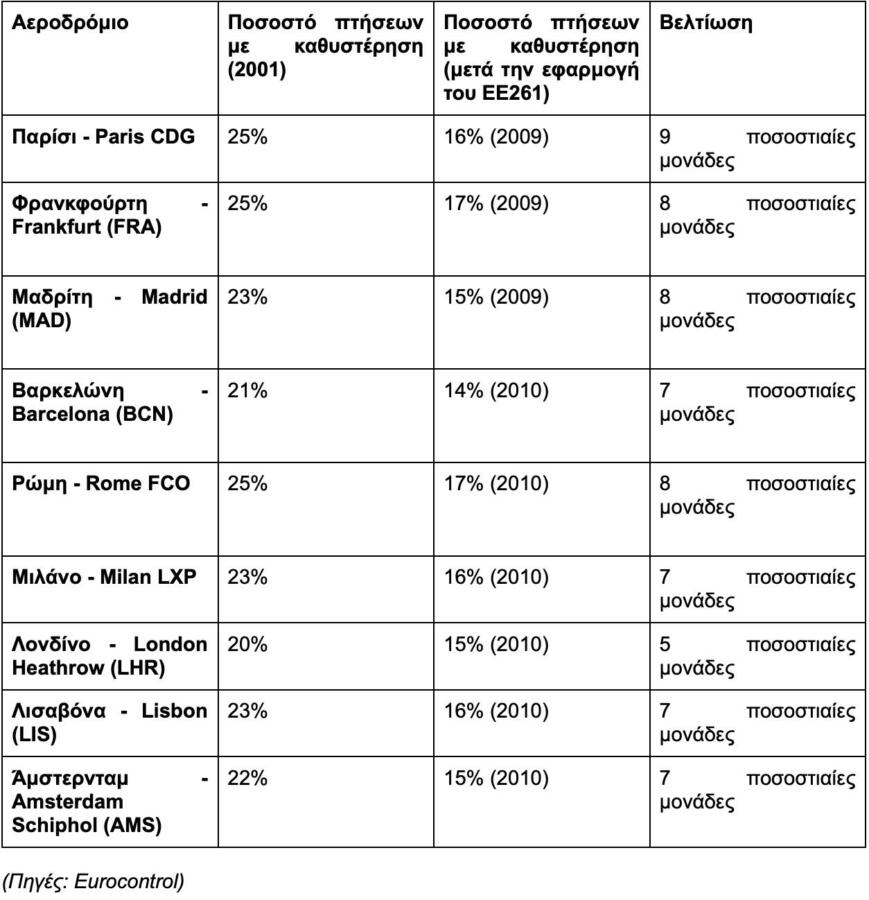 Αεροδρόμια που αποδεικνύουν την αποτελεσματικότητα του κανονισμού EΕ261