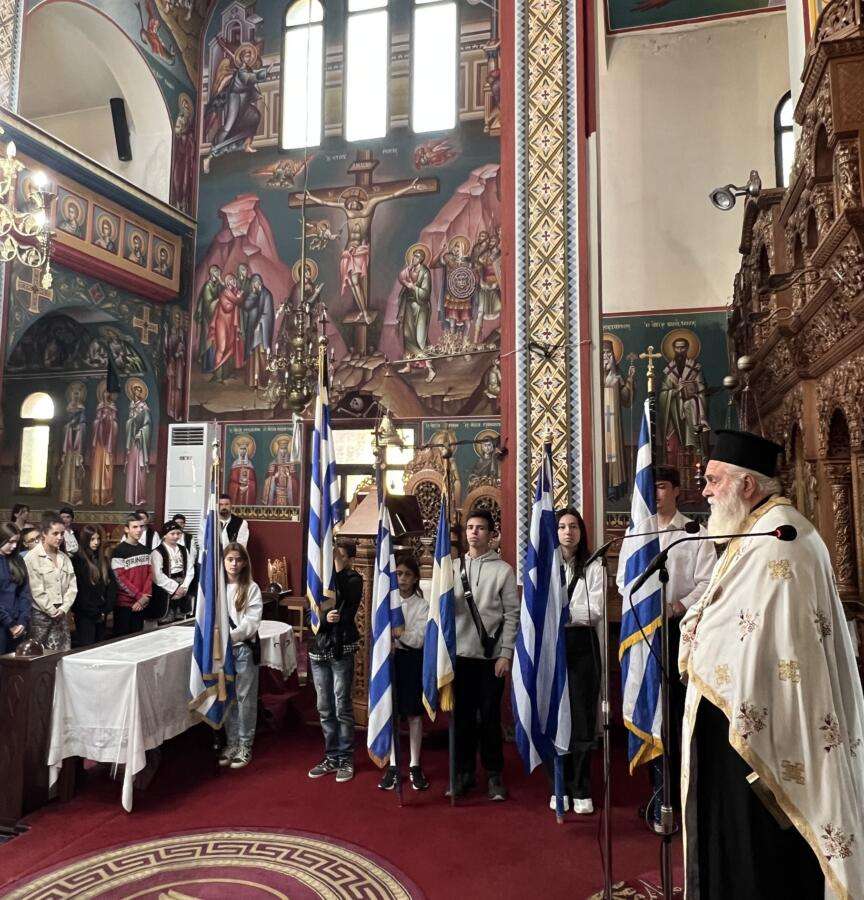Οι εκδηλώσεις ξεκίνησαν στις 9:30 π.μ. με την τέλεση Δοξολογίας και επιμνημόσυνης δέησης υπέρ των πεσόντων στον Ιερό Ναό Κοιμήσεως της Θεοτόκου στο Καναλάκι, παρουσία των τοπικών αρχών, εκπροσώπων φορέων, συλλόγων και μαθητών.