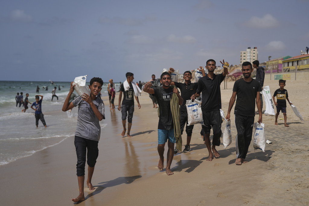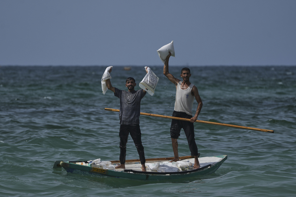 Εκατοντάδες Παλαιστίνιοι σπεύδουν να πάρουν τη βοήθεια που φτάνει είτε με φορτηγά είτε πέφτει από αέρος. Ο ανταποκριτής του ΒΒC, που ήταν μέσα στο αεροπλάνο με την ανθρωπιστική βοήθεια της Ιορδανίας, περιέγραψε τα όσα αντίκρισε από ψηλά.