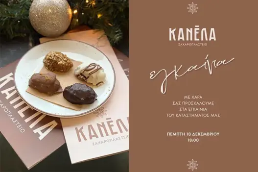 Η «Κανέλα» ανοίγει επίσημα τις πόρτες της την Πέμπτη 18 Δεκεμβρίου στις 18:00, με μια γιορτινή εκδήλωση εγκαινίων στο κέντρο του Καναλακίου. Οι παρευρισκόμενοι θα έχουν την ευκαιρία να γνωρίσουν από κοντά τις γεύσεις του καταλόγου, να δοκιμάσουν χειροποίητα γλυκά και να μοιραστούν τη χαρά της νέας αρχής.