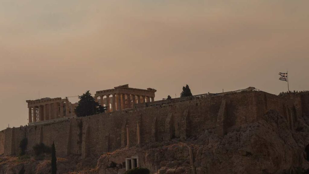 Η ατμόσφαιρα είναι αποπνικτική, ενώ η μυρωδιά του καμένου είναι αισθητή σε πολλές περιοχές της Αττικής και η ορατότητα παραμένει μειωμένη.