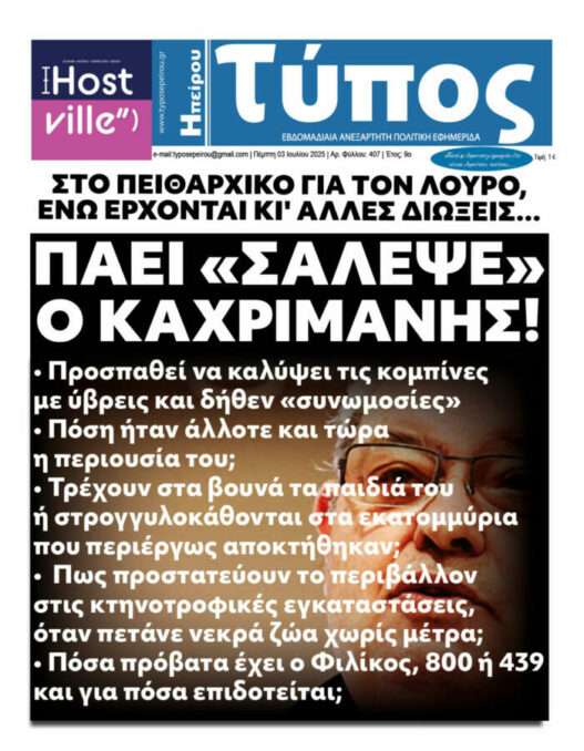 Στον ΟΠΕΚΕΠΕ τώρα, το σκάνδαλο που συγκλονίζει την Ελλάδα και έχει εξοργίσει την Κομισιόν, με τον κ.Καχριμάνη σχεδόν να πρωταγωνιστεί. Υπογραφές για βοσκοτόπια σε Μετακινούμενους Κτηνοτρόφους (με τον φίλο του και …συνδαιτημόνα κ.Γιάννη Δεκόλη να «αλωνίζει» και στις καλλιέργειες με επιδοτήσεις), εκατοντάδες χιλιάδες σε μέλη της οικογένειάς του (τον γιό του Γιώργο και την σύζυγό του Ελένη Τρίχα, τον έτερο γιό τον Φιλίκο) για επιδόσεις στην … βιολογική καλλιέργεια σε χιλιάδες στρέμματα στο … Μέτσοβο υποτίθεται (που και τι καλλιεργούν;).