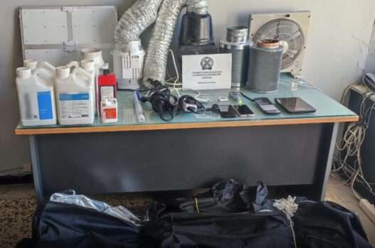 Η επιχείρηση της Δίωξης Ναρκωτικών αποκάλυψε ένα εργαστήριο με σύγχρονο εξοπλισμό: ζυγαριές ακριβείας, ψηφιακά θερμόμετρα, συστήματα εξαερισμού, ανεμιστήρες και αφυγραντήρες, που εξασφάλιζαν ιδανικές συνθήκες για την ανάπτυξη των φυτών. Κατά την έρευνα κατασχέθηκαν:
