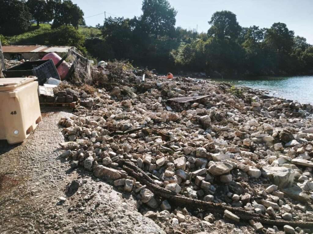 Ένα συσκευαστήριο υπέστη σοβαρές φθορές, ενώ γειτονικές μονάδες ιχθυοκαλλιέργειας αποκλείστηκαν, καθώς η πρόσβαση διακόπηκε από τον όγκο των φερτών υλικών που κάλυψαν τον δρόμο.