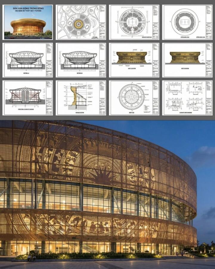 Η αρχιτεκτονική του σταδίου είναι εμπνευσμένη από το χάλκινο τύμπανο Dong Son, ένα ιερό τεχνούργημα που συμβολίζει τον αρχαίο βιετναμέζικο πολιτισμό, αντιπροσωπεύοντας τη δύναμη, τη μακροζωία και το κοινοτικό πνεύμα. Κατασκευάζεται σε ένα συγκρότημα 9.000 εκταρίων (90 εκατομμυρίων τ.μ.), το στάδιο θα διαθέτει αναδιπλούμενη οροφή και θα είναι μια πολυχρηστική αρένα για αθλήματα, συναυλίες και φεστιβάλ.