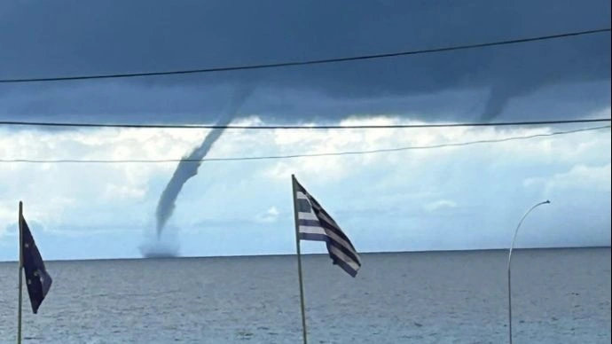 Υδροστρόβιλος δίπλα σε πλεούμενο έξω από τους Παξούς